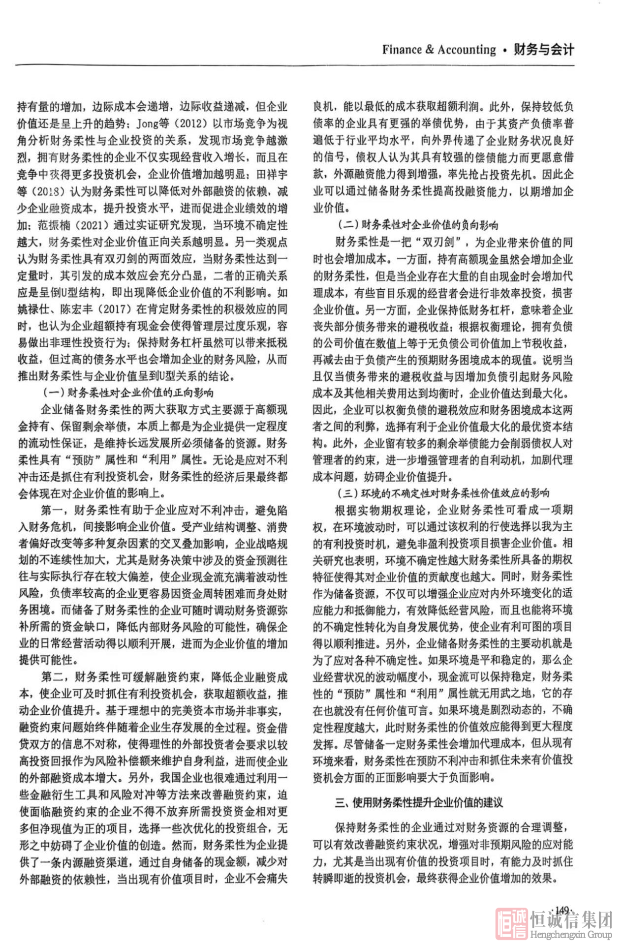 論文指出,財(cái)務(wù)柔性是企業(yè)應(yīng)對(duì)不確定外部環(huán)境的重要能力,即企業(yè)可通過調(diào)整財(cái)務(wù)策略和結(jié)構(gòu)來應(yīng)對(duì)風(fēng)險(xiǎn)、把握機(jī)遇,適度的財(cái)務(wù)柔性能夠帶來顯著提升企業(yè)投資效率、降低融資成本、增強(qiáng)企業(yè)應(yīng)對(duì)市場波動(dòng)的能力等諸多好處。同時(shí),對(duì)財(cái)務(wù)的柔性管理給出了清晰的思路和方法,并針對(duì)企業(yè)優(yōu)化財(cái)務(wù)柔性儲(chǔ)備提出了樹立科學(xué)的財(cái)務(wù)柔性儲(chǔ)備理念、優(yōu)化公司治理結(jié)構(gòu)、合理配置現(xiàn)金儲(chǔ)備和債務(wù)結(jié)構(gòu)等具體建議,為企業(yè)在知識(shí)經(jīng)濟(jì)時(shí)代的財(cái)務(wù)管理提供了重要的理論支持和實(shí)踐指導(dǎo),助力企業(yè)在動(dòng)態(tài)環(huán)境中實(shí)現(xiàn)可持續(xù)發(fā)展。