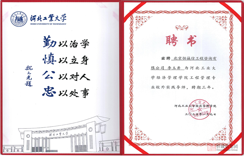 長期以來,恒誠信始終聚焦工程咨詢領(lǐng)域,持續(xù)深入鉆研,積累了深厚的技術(shù)積淀與寶貴的項目實操經(jīng)驗,在工程咨詢行業(yè)贏得了社會各界的廣泛認(rèn)可與高度贊譽。此次聘任,不僅彰顯了李玉井個人卓越的專業(yè)素養(yǎng)與豐富的行業(yè)經(jīng)驗,更凸顯了恒誠信雄厚的專業(yè)實力與廣泛的行業(yè)影響力,為恒誠信與河北工業(yè)大學(xué)經(jīng)濟管理學(xué)院搭建起了溝通協(xié)作的橋梁,為進(jìn)一步推動產(chǎn)學(xué)研的深度融合創(chuàng)造了有利條件。